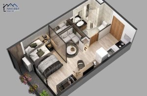 Căn hộ studio nhỏ đẹp, bố trí nội thất tiện nghi là không gian sống...